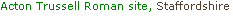 Acton Trussell is a village 4 miles south-east of Stafford - known as Actone in Domesday. In 1985 Roman remains were discovered south-east of St. James’s Church, and excavation was undertaken. This showed that a wing of a Roman villa had been found. A later watching brief when work was undertaken in the church, confirmed that the building extended to at least the tower, 43 m away. Continuing excavation outside the churchyard since has shown the remains to be 2nd to 4th century in date. Neolithic, Bronze Age and Iron Age activity has also been discovered.